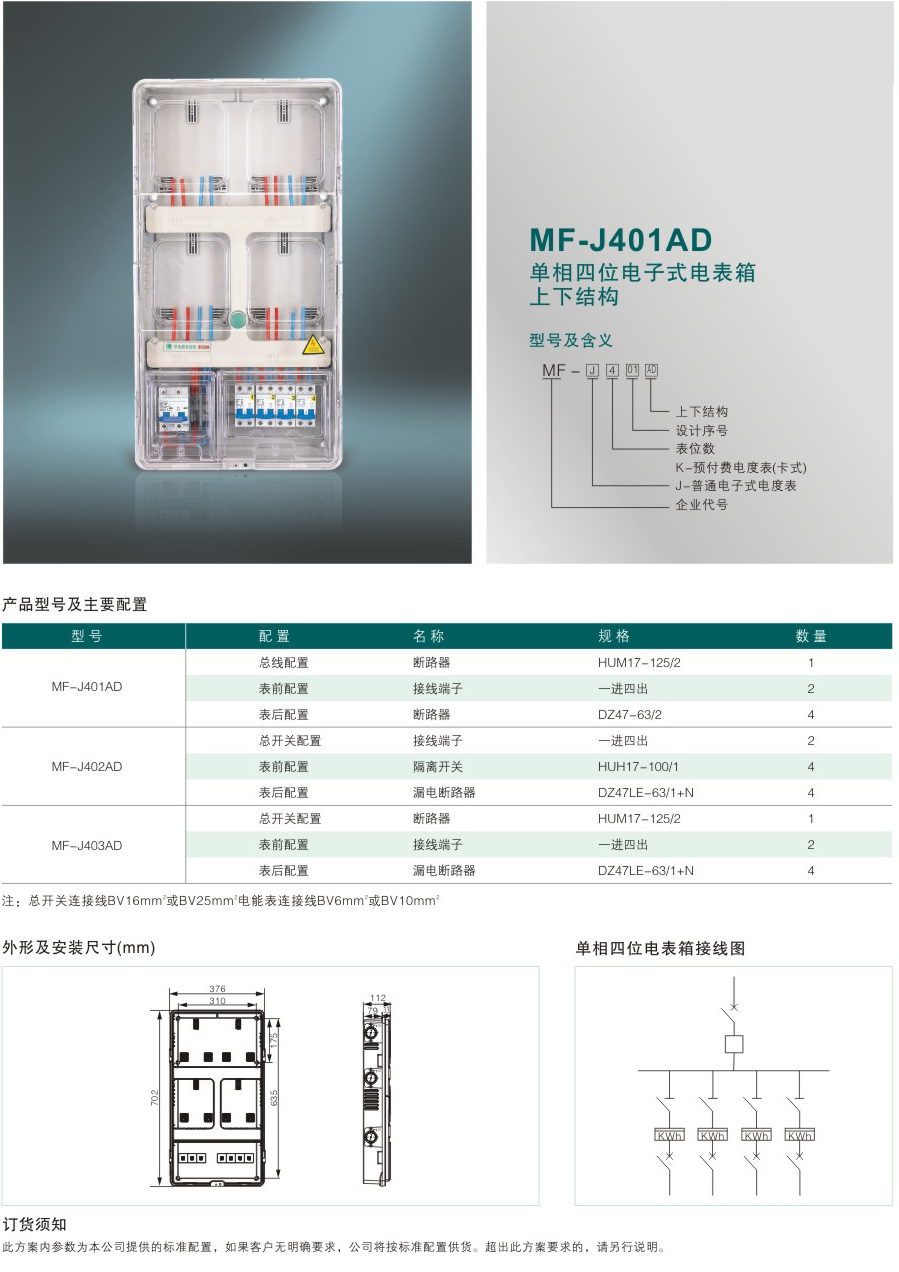 MF-K401AD 單相四位插卡式電表箱上下結構
