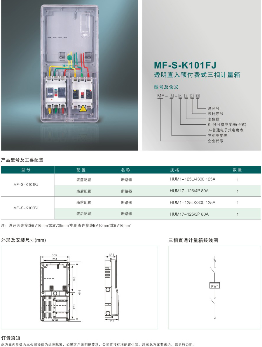 MF-S-K101FJ 透明直入預付費式三相計量箱