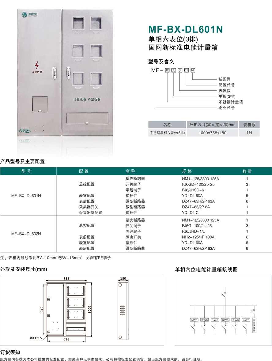 MF-BX-DL601N單相六表位(3排)國網新標準電能計量箱