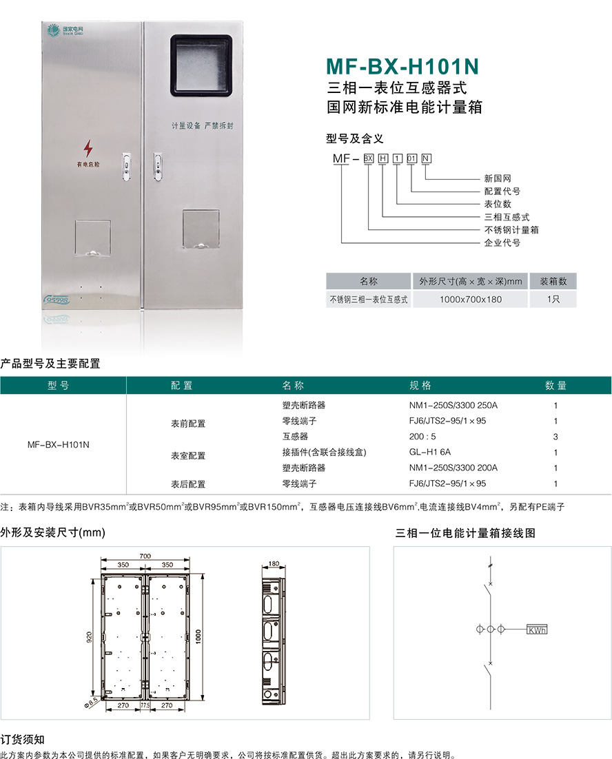 MF-BX-H101N三相一表位互感器式國網新標準電能計量箱