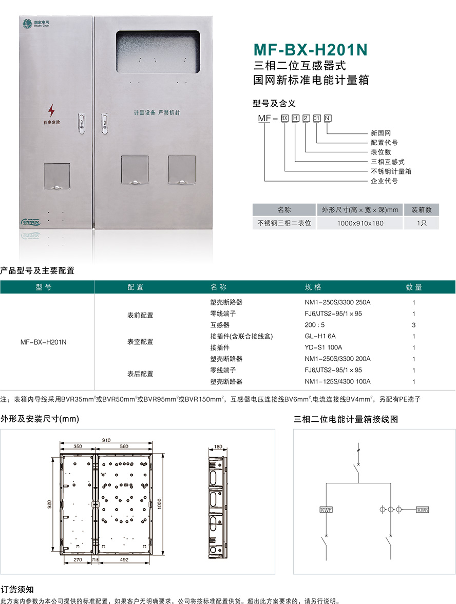 MF-BX-H201N三相二位互感器式國網新標準電能計量箱